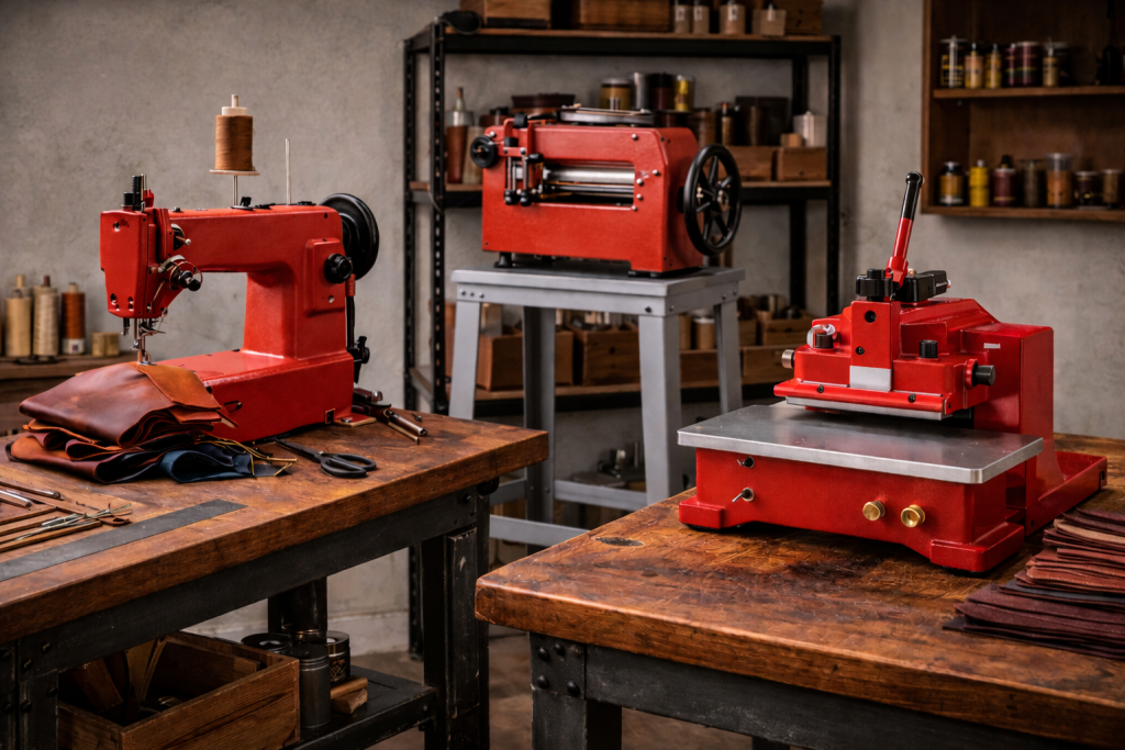 - Decide the job first: stitching, skiving, splitting, sanding/buffing, edge finishing, or clicking/cutting — these are different machines.